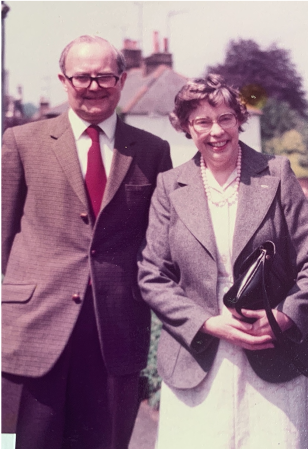 Joyce met Sid at a friend's birthday party and they married three years later in 1951. Although they lived in Surbiton and Merton and Raynes Park, in 1965 they came to Leatherhead and here Debora and Andrew grew up and went to school. When the family moved to Mayell Close [from Windfield] they were joined by Joyce's Mum, who lived to receive a telegram from the Queen and to whom Sid dedicated his third book of Sonnets.